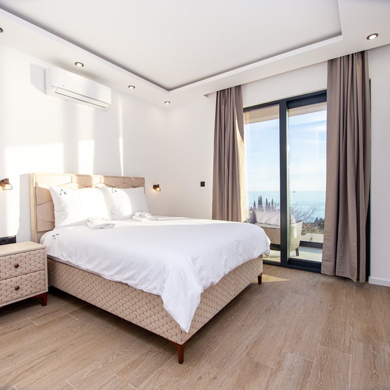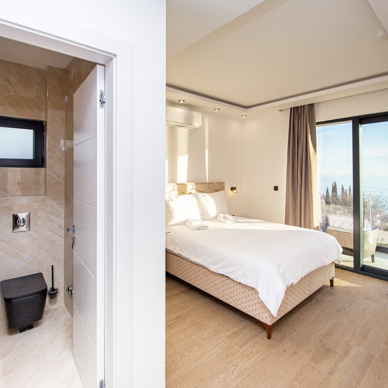 This bedroom boasts its own private bathroom and a spacious terrace with stunning sea views. Wake up to the sound of the waves and enjoy your morning coffee overlooking the Adriatic. The room is designed for comfort and privacy, making it a perfect personal sanctuary.